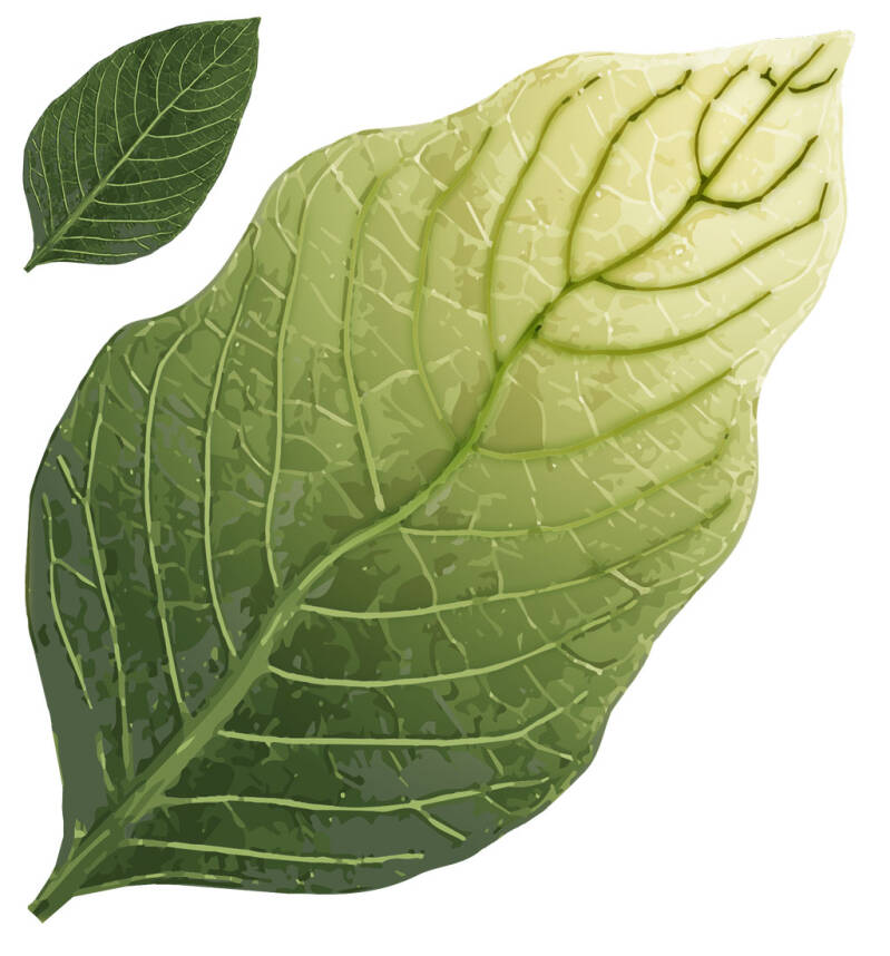In the case of a serious iron deficiency, stunted growth and black, dying leaf tissue (necrosis) may also occur. The deficiency symptoms can be easily remedied by adding a little more iron fertiliser. Alternatively, you can target the iron content with a special fertilizer like Legend Florebit Ferrum Fe.