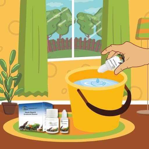 Place the plastic plant and ornament in a separate container containing 10 litres of water and 1 tablet of Plastic Plant & Ornament Cleaner™.