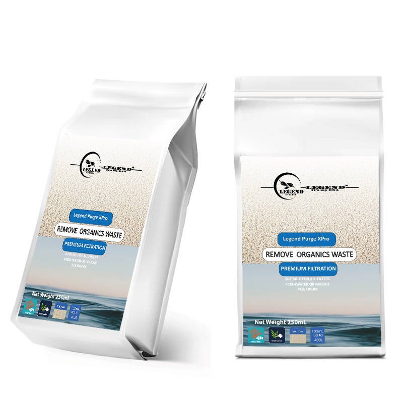 Purge XPro® is the highest capacity organic filtration resin on the market. No other products can compare to its ability to clear haziness and polish water to unparalleled clarity. Unlike other products on the market which are simple ion-exchange resins, Purge XPro® is specifically designed to be an organic scavenging resin. When ion-exchange resins are filled to capacity by metals and other contaminants, Purge XPro® has barely begun to reach its potential. Purge XPro® generally ignores simple elemental compounds, having an extreme affinity for nitrogenous organics. The primary source of nitrogenous compounds in an aquarium is waste. Fish, corals, even plants produce nitrogenous waste. Purge XPro® removes that waste faster and more completely than anything else on the market.