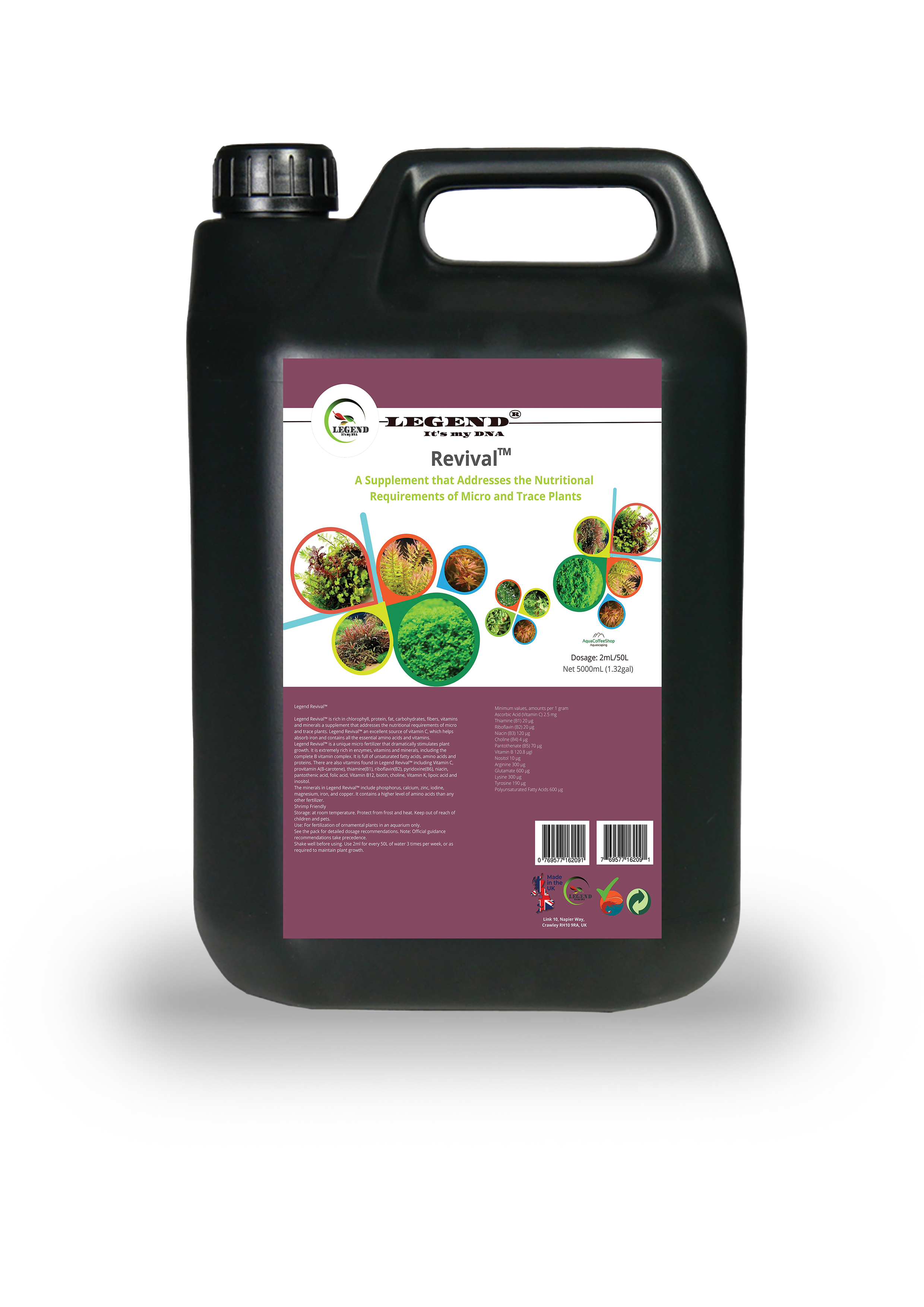 Legend Revival™ is rich in chlorophyll, protein, fat, carbohydrates, fibers, vitamins and minerals a supplement that addresses the nutritional requirements of micro and trace plants. Legend Revival™ an excellent source of vitamin C, which helps absorb iron and contains all the essential amino acids and vitamins.
